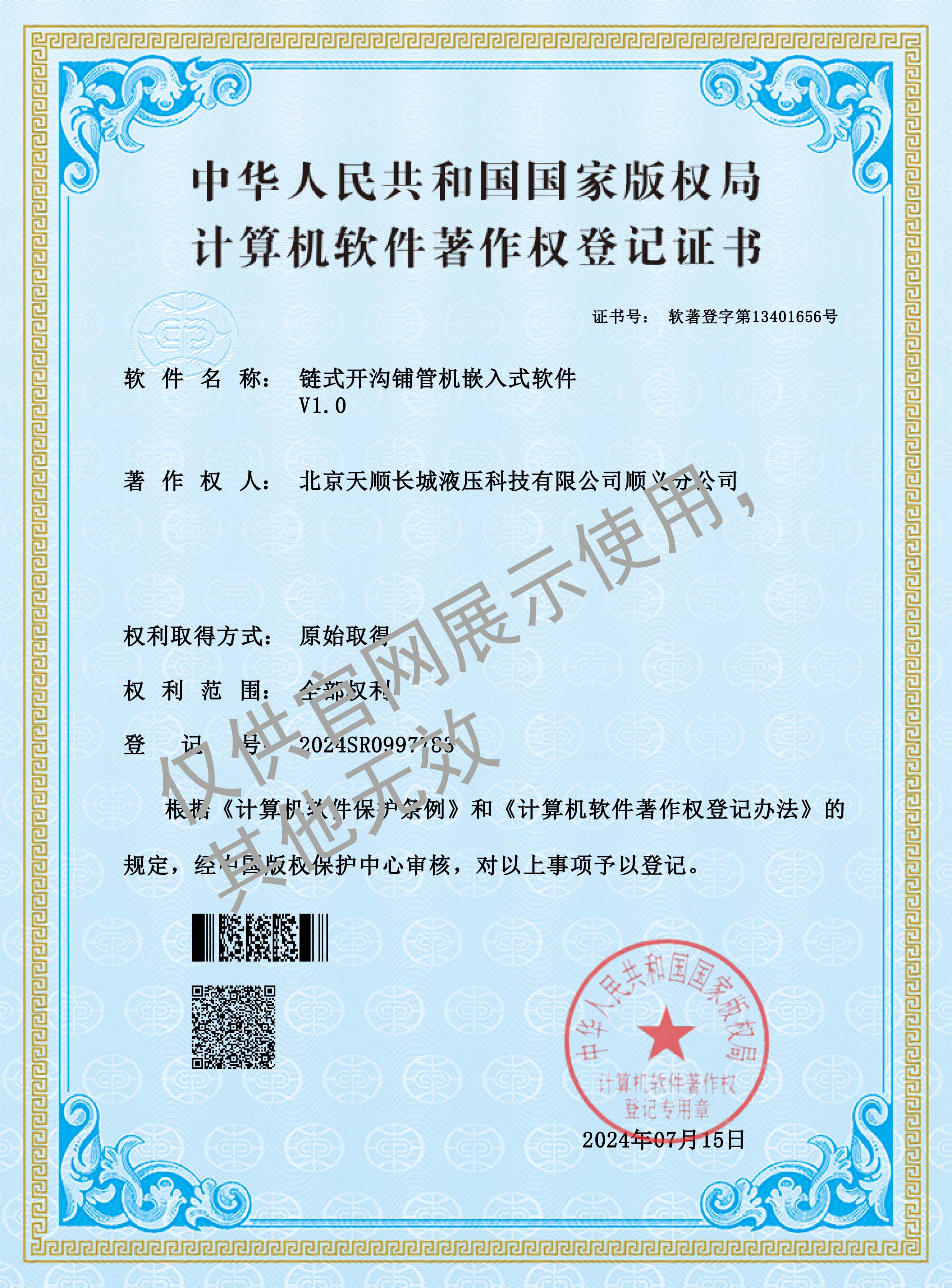 116-軟著-2024SR0997783-鏈?zhǔn)介_溝鋪管機(jī)嵌入式軟件V1.0