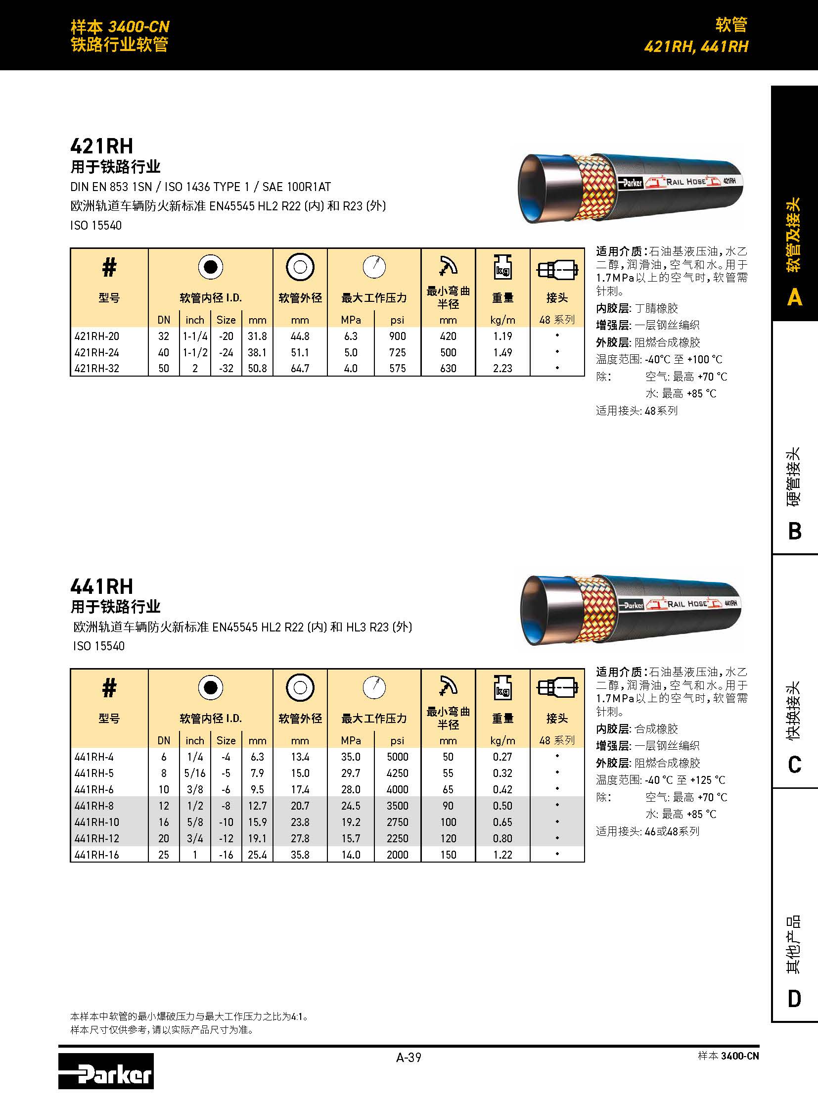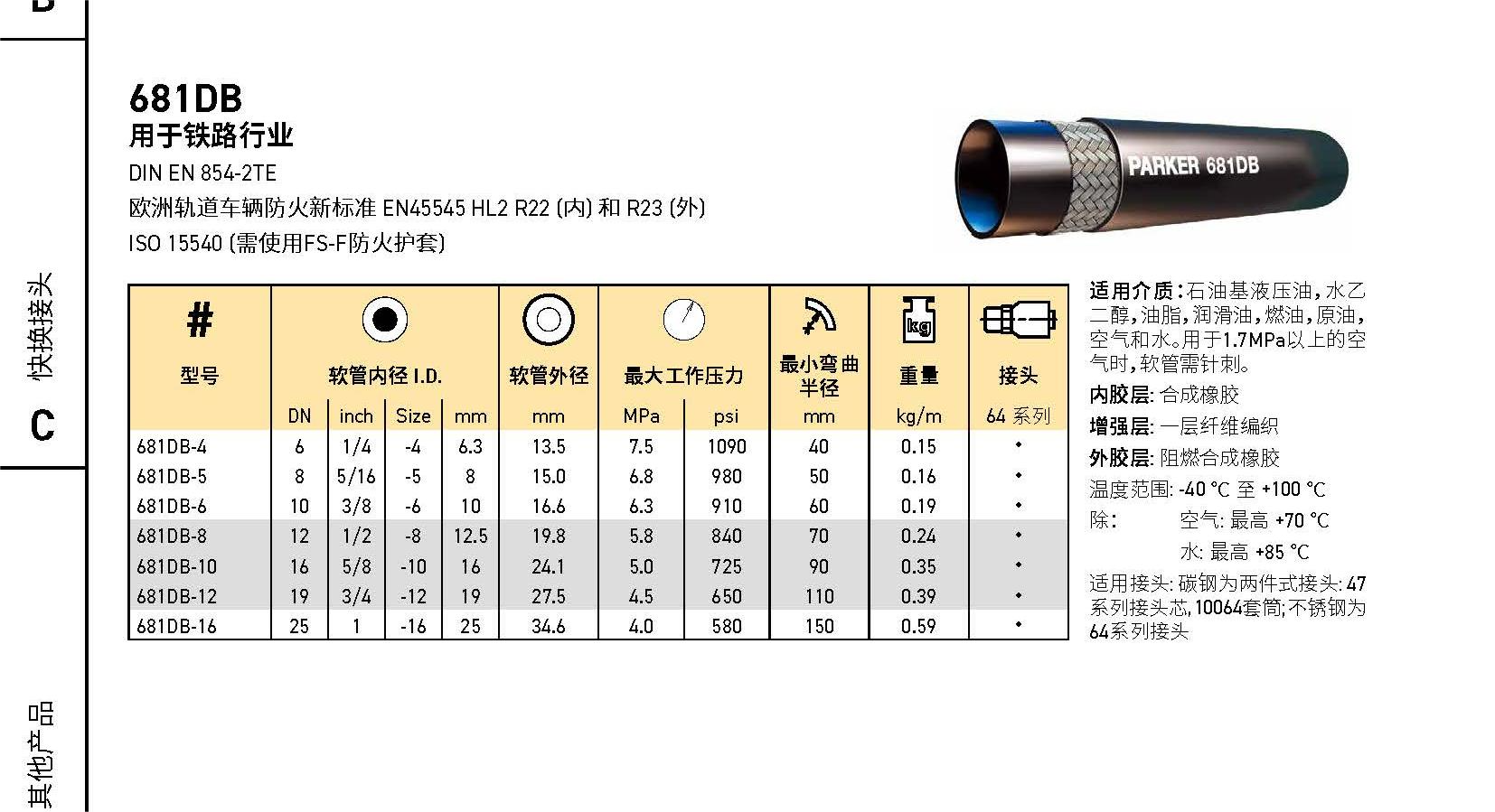 適用介質(zhì):石油基液壓油,水乙二醇,潤滑油,空氣和水。用于1.7MPa以上的空氣時,軟管需針刺。
