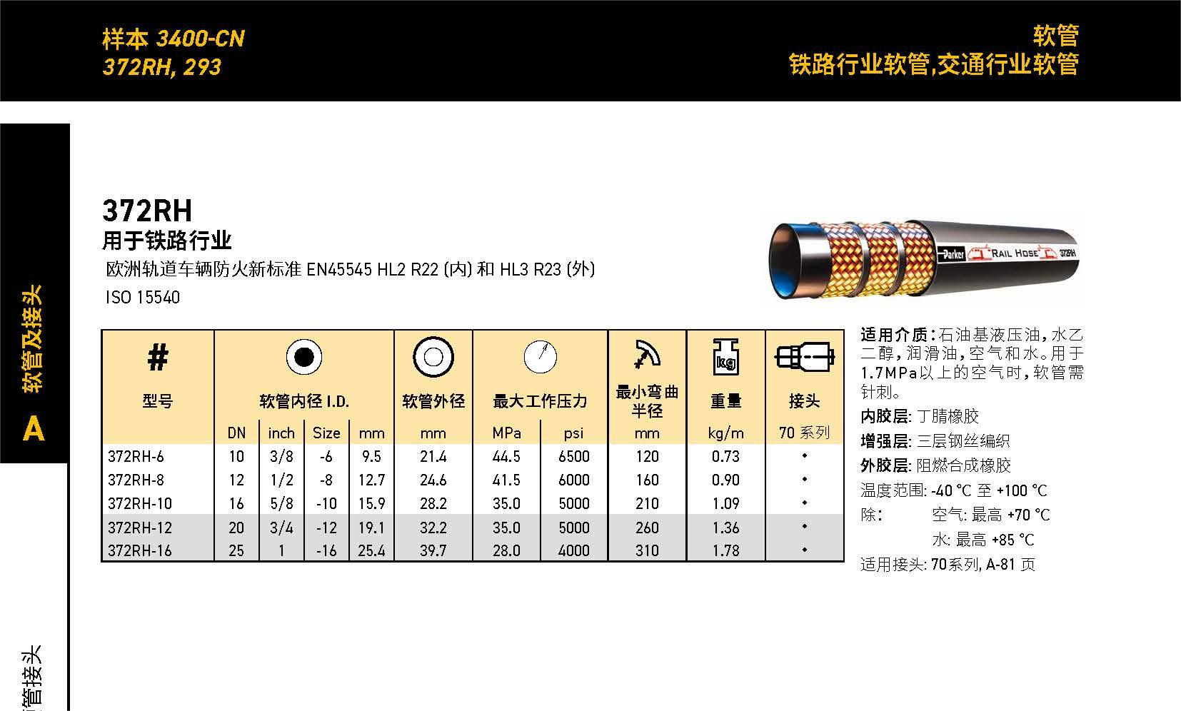 適用介質(zhì):石油基液壓油,水乙二醇,油脂,潤滑油,燃油,原油,空氣和水。用于1.7MPa以上的空氣時,軟管需針刺。